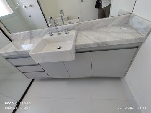 🔹 Banheiros modernos com gabinetes planejados e acabamentos de alto padrão